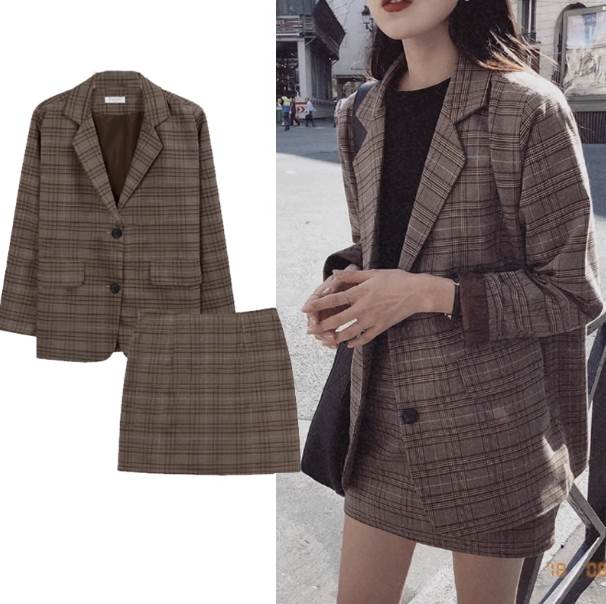 2点セット セットアップ レディース ジャケット タイトスカート ツーピース 長袖 テーラード ミニスカート グレンチェック マニッシュ かわいい 大人可愛い きれいめ シンプル カジュアル