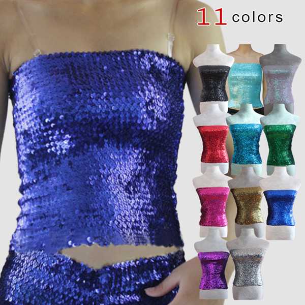 スパンコール 衣装 ダンス衣装 チューブトップ ヒップホップ ステージ衣装 11カラーレディースファッション トップス その他
