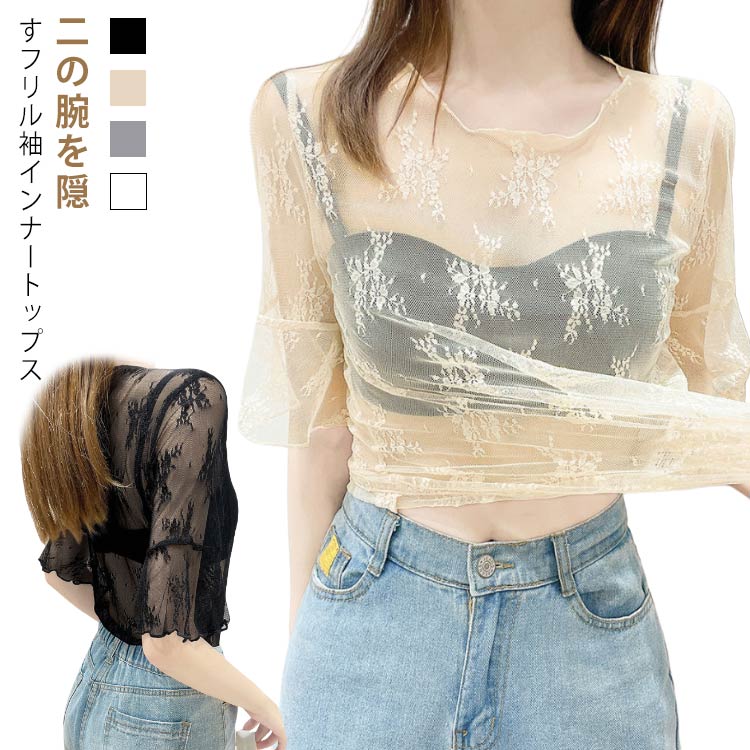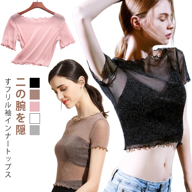 インナートップス シアートップス tシャツ レディース 体型カバー ノースリーブ用 付け袖 プルオーバー 重ね着 二の腕隠し つけ 袖 肌着 ラメ