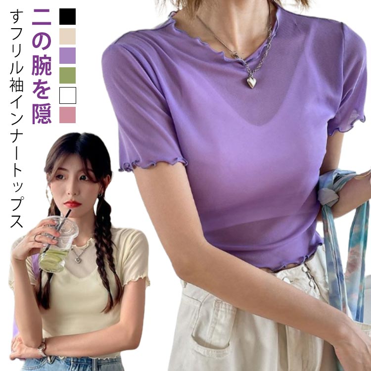 プルオーバー S~XL シアートップス 重ね着 tシャツ ノースリーブ用 レディース 付け袖 ラメ インナートップス 体型カバー 二の腕隠し つけ 袖 肌着 ラメ