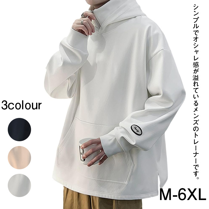 トレーナー パーカー メンズ フード付き 無地 長袖 大きいサイズ プルオーバー トップス タートルネック ゆったり シンプル カジュアル ジュニア 春 秋 冬 M-6XL