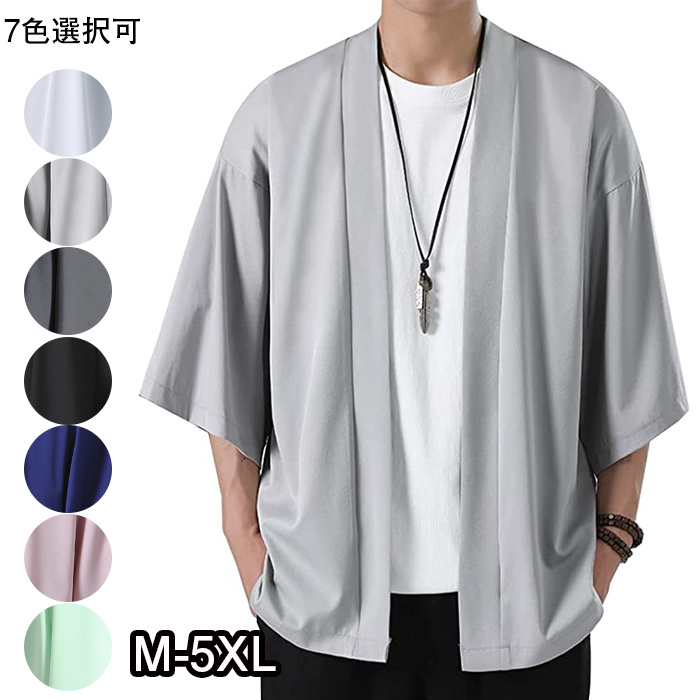 夏服 メンズ カーディガン メンズ ビジネス カジュアル 無地 和風 羽織 アウターシャツ 和式カーディガン メンズ 七分袖軽量 光沢通気性 おしゃれ 大きいサイズ 春夏秋メンズ