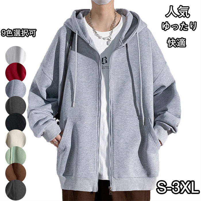 パーカー メンズ ジップアップ スウェット トレーナー ゆったり 長袖 無地 シンプル おしゃれ 大きいサイズ ジャケット 人気 スポーツ オシャレ カジュアル カーディガン