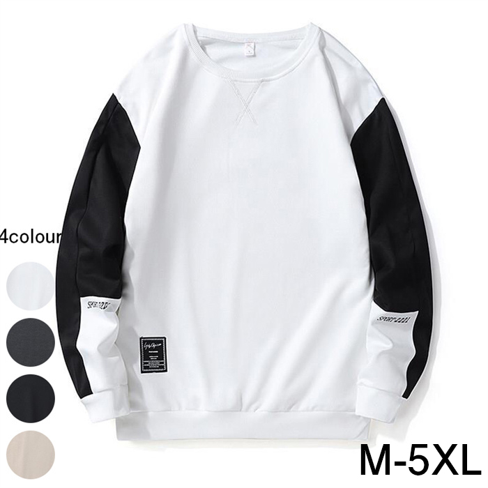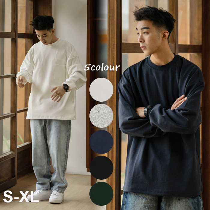 スウェット メンズ トレーナー 無地ロン 長袖 シャツ コットン ビッグシルエット 胸ポケット ロン クルーネック 無地シャツ 無地 カットソー 綿 無地 ビッグシルエット