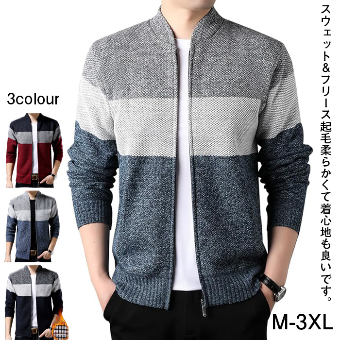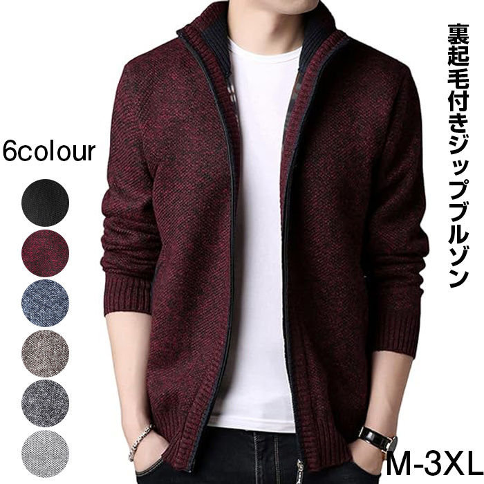 カーディガン 裏起毛 メンズ スタンドネック フルジップ ブルゾン アウター カジュアル 防寒 秋 冬 M-3XL