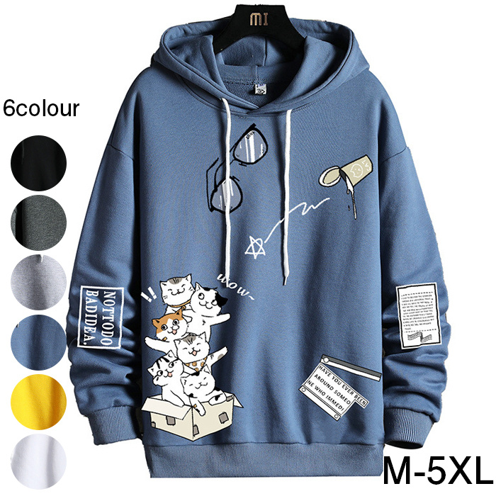 パーカー メンズ トレーナー 秋服 長袖 tシャツ 丸首 猫柄 プリント スウェット 大きいサイズ プルオーバー ゆったり カジュアル おしゃれ 可愛い 無地 軽い 快適 柔らかい 春