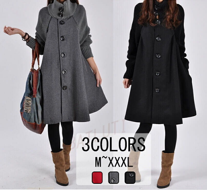 秋冬 フレアコート ロングコート ダッフルコート 秋 冬 Aライン ニット ロング ジャケット アウター 中綿コート ミディアム丈 膝丈 ワンピ 長袖