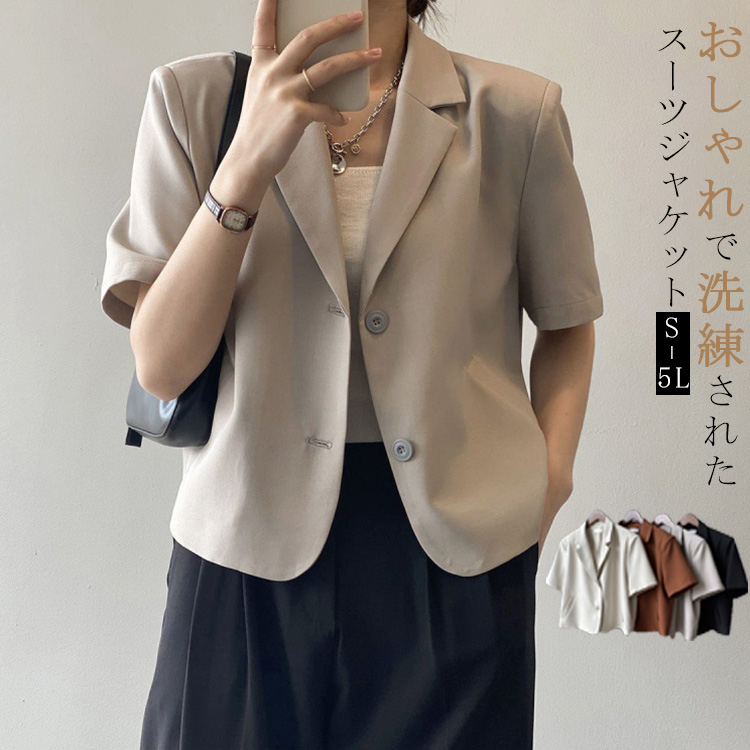 テーラードジャケット スーツジャケット 半袖 アウター 入学式 軽量 洗える ウオッシャブル オフィスカジュアル 春夏 20代 30代 40代 50代 白 黒 紫外線対策 カット 着痩せ