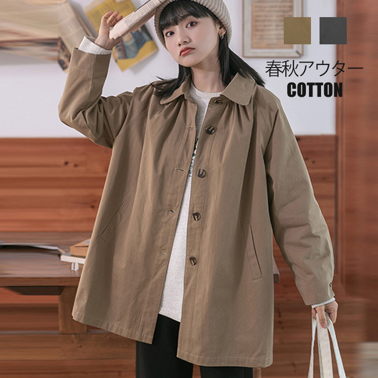 ロングコート トレンチコート 春秋 秋用 綿 コットン ジャケット コート アウター トレンチ スプリングコート 羽織りもの 襟付き ポケット 長袖 低身長 カジュアル シンプル 可愛い