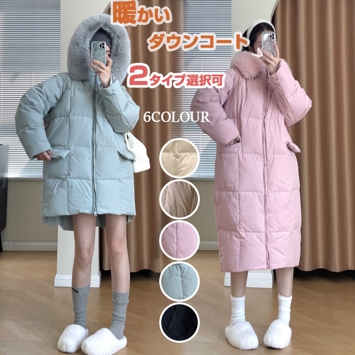 ダウンコート コート レディース 冬 ダウンジャケット ロングコート 大きめポケット ポケット付き ファー アウター 前開き 厚手 暖かい 防寒 撥水 カジュアル