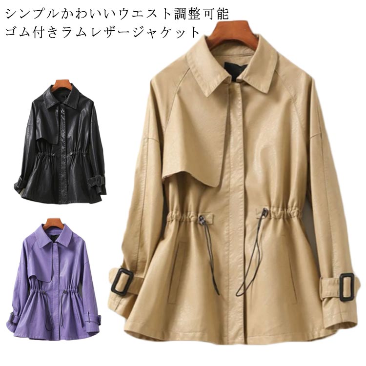 本革 シングル ライダースジャケット レディース 羊革 ラムレザー ブラック キャメル パープルレディースファッション コート ジャケット