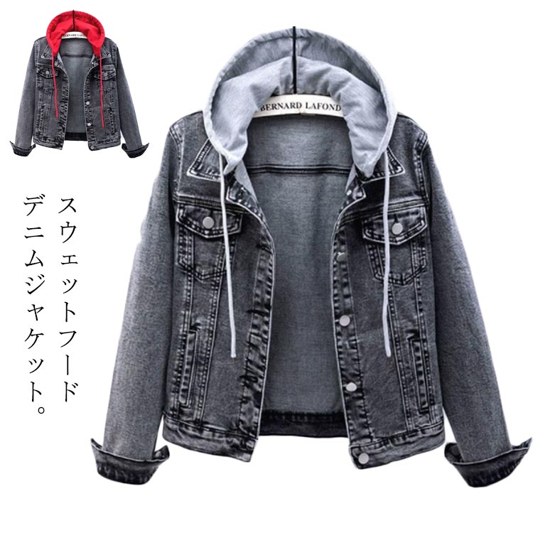 デニムジャケット スウェットフード スウェット スエット デニム レディース ジャケット 秋 アウター ショート丈 グレー