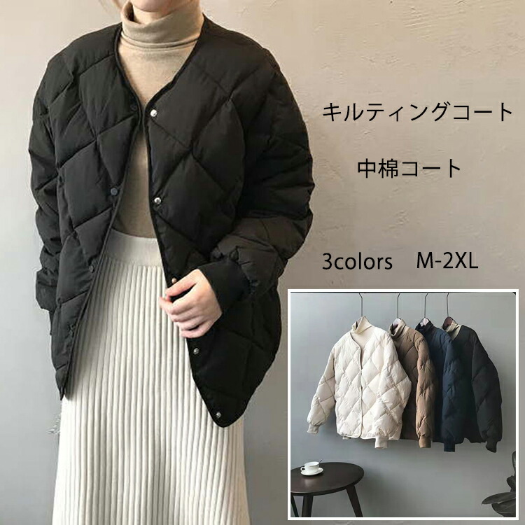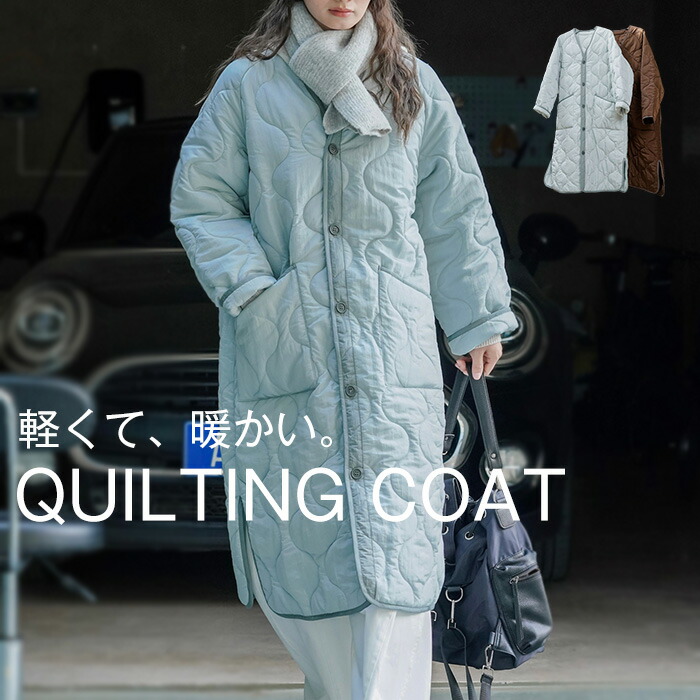 あったかいキルティングコート ノーカラー ふんわり 防寒 あったかレディースファッション コート ジャケット