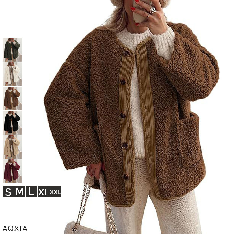 ノーカラー 長袖 暖かい 冬コート 冬アウター コート ファージャケット フェイクファーコート オシャレ 着膨れ感なし 柔らかい フェミニン