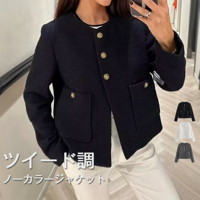 ジャケット レディース 春 秋 長袖 ノーカラー ツイード調 スーツ フォーマル カーディガン フリンジ ジャケット 春 秋 着痩せ 体型カバー シンプル カジュアル おしゃれ ビジネス 通勤