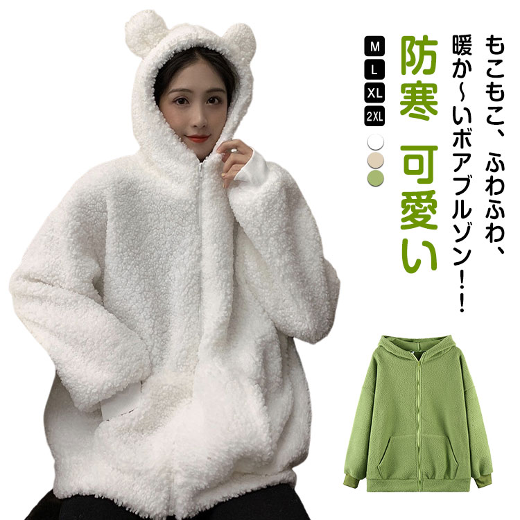 ボアジャケット ボアコート 学生 高校生 ボアパーカー くま耳 パーカー レディース ボア ジャケット