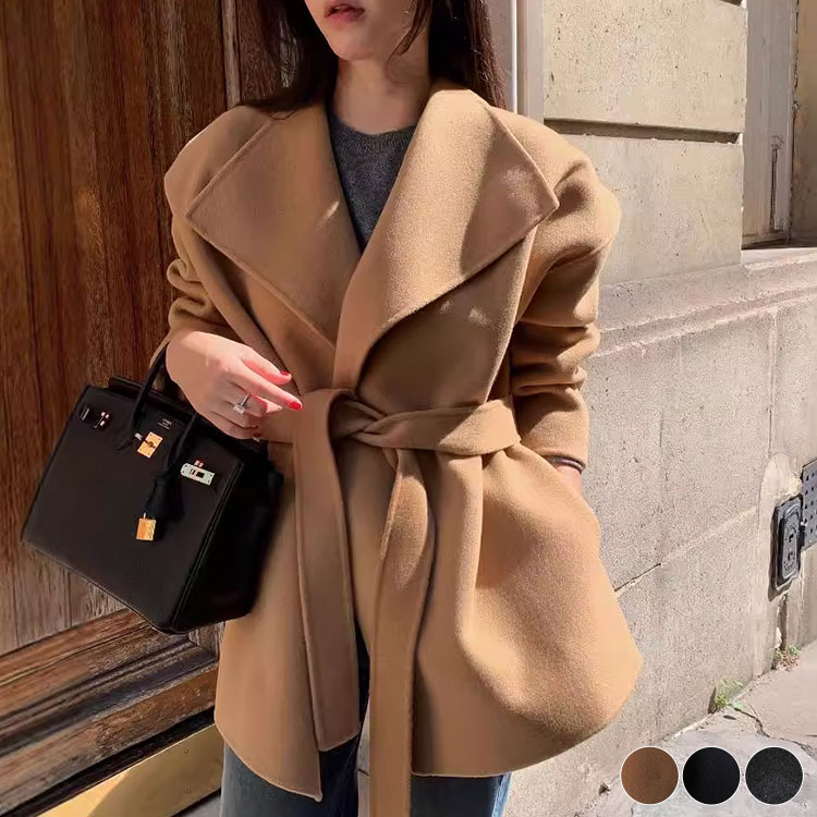 コート レディース ガウン 韓国 ゆったり アウター 襟付き ショート丈 ガウンコート セミロング ミドル丈 ショートコート 大きめ襟 エレガント 大人 おしゃれ 通勤 シンプル ベージュ 黒 グレー