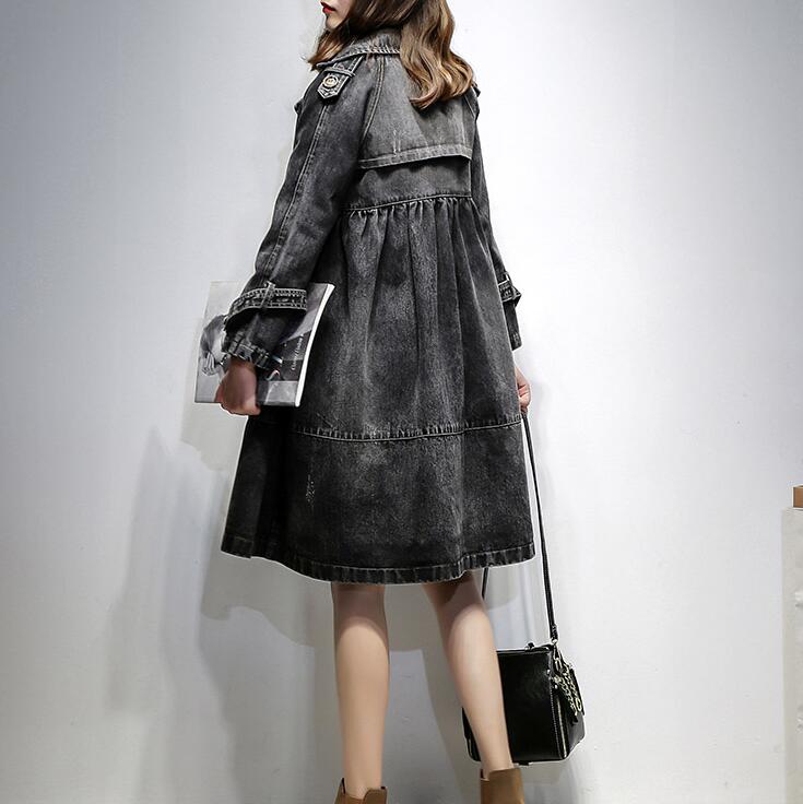 デニム Gジャン レディース ライトアウターデニムトレンチコートスプリングコートデニムジャケット アウター ロング丈110kgまでブルーブラック