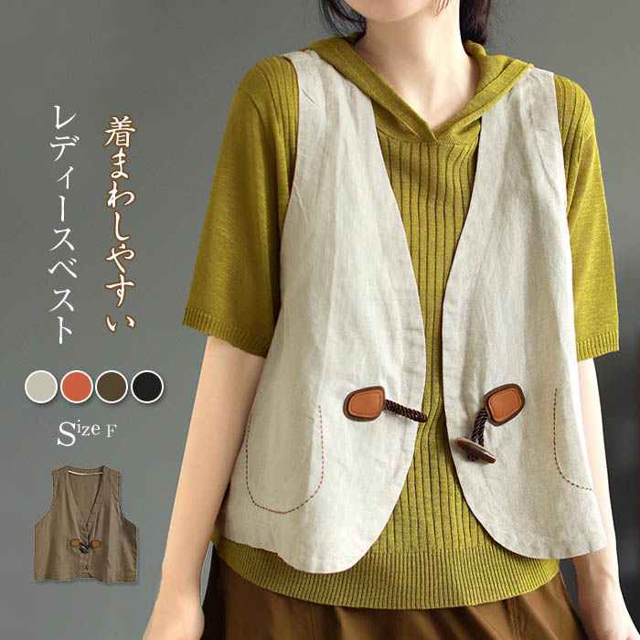 ベスト レディース コットン 春 夏 秋 春夏秋 レディースベスト ナチュラル おしゃれ 前開き トップス レディーストップス デザイン ノースリーブ レイヤード 重ね着 30代 40代 50代