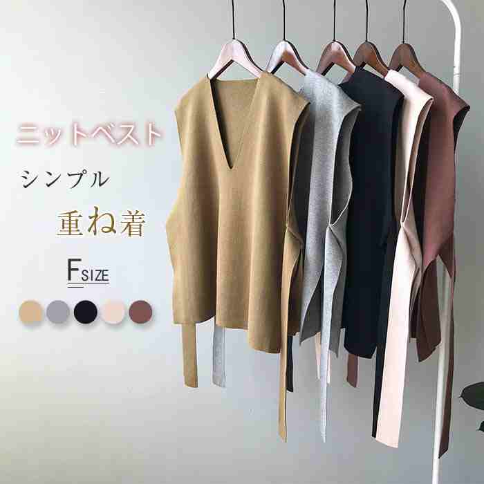 ネック ニット ベスト レディース 秋 冬 きれいめ ニットベスト 無地 ベスト レディース ゆったり おしゃれ 秋 冬 春 スリット トップス 着回し ベルト付き ノースリーブ