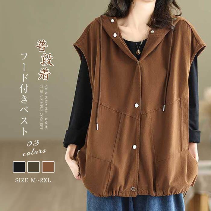 フード付きベスト レディース 春秋 着心地良い フード 春 秋 ジレ 春秋 レディースベスト ベスト ナチュラル おしゃれ 前開き トップス フード付き