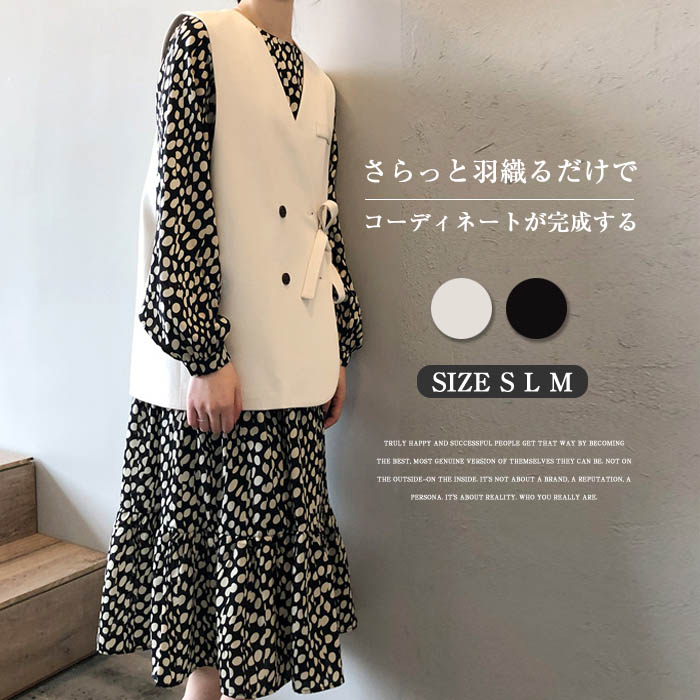 ジレ レディース ベスト テーラードベスト 春 秋 ノーカラー ベスト 春ベスト おしゃれ ベスト 夏ベスト デザイン 前開き トップス ゆったり リボン サマージャケット