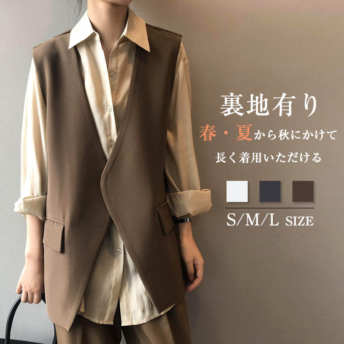 ジレ レディース ベスト テーラードベスト 春夏 ノーカラー ベスト レディース おしゃれ ベスト 夏ベスト デザイン 前開き トップス ゆったり 個性的