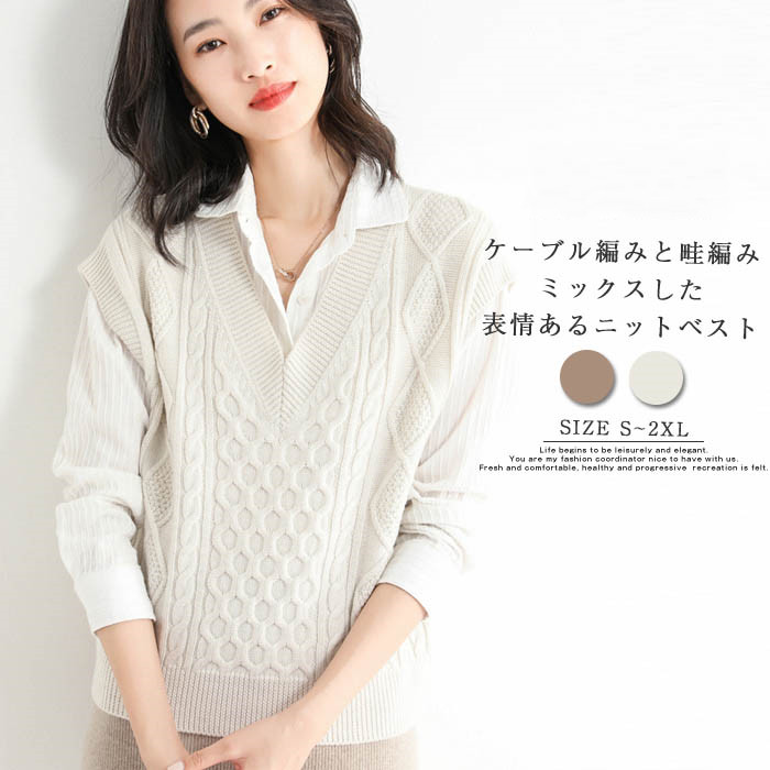 ケーブル編み ニット ベスト レディース 秋 サマー ベスト レディース ニットベスト ケーブルニット ベスト プルオーバー おしゃれ ベスト vネック