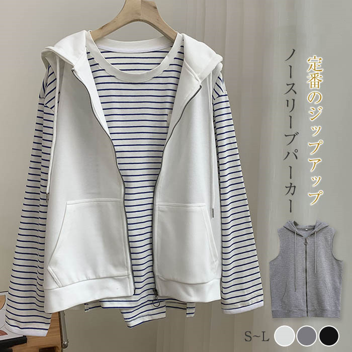 ベスト レディース スウェット ベスト カットソーベスト ジレ フーテッドベスト 前開き トップス ジップアップ ノースリーブパーカー パーカーベスト