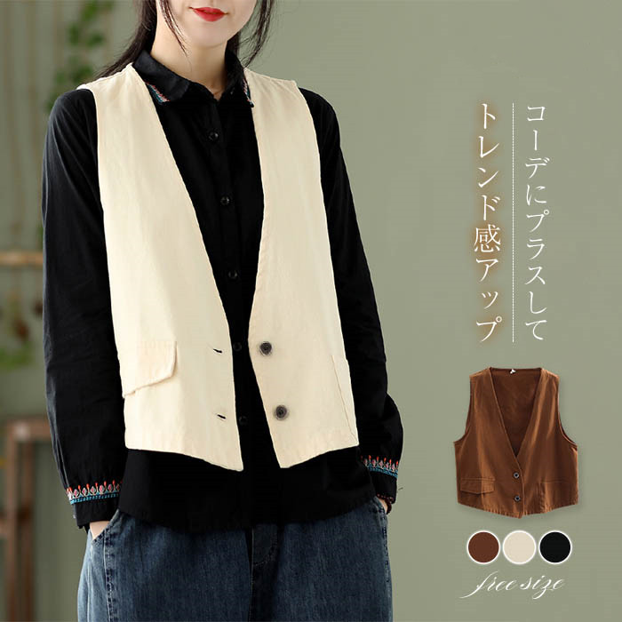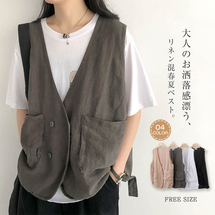 ジレ ベスト レディース 春夏 リネン ベスト レディース おしゃれ ベスト 夏ベスト 薄手 前開き トップス ゆったり コットンリネン 麻 大きいサイズ サマージャケット