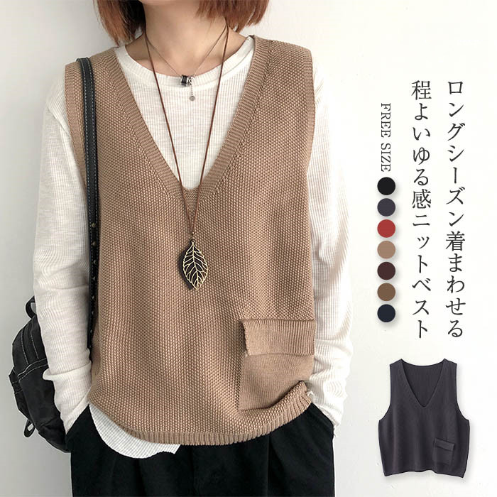 サマー ベスト レディース ニットベスト 春秋 ベスト レディース ベスト シンプル ベスト ニット ベスト vネック 秋 冬 無地 大きいサイズ トップス 着回し ノースリーブ