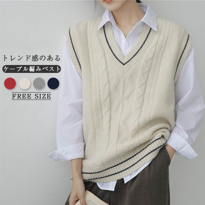 ケーブル編み ニット ベスト サマー ベスト レディース ニットベスト ケーブルニット ベスト プルオーバー おしゃれ ベスト Vネック 春 秋 冬