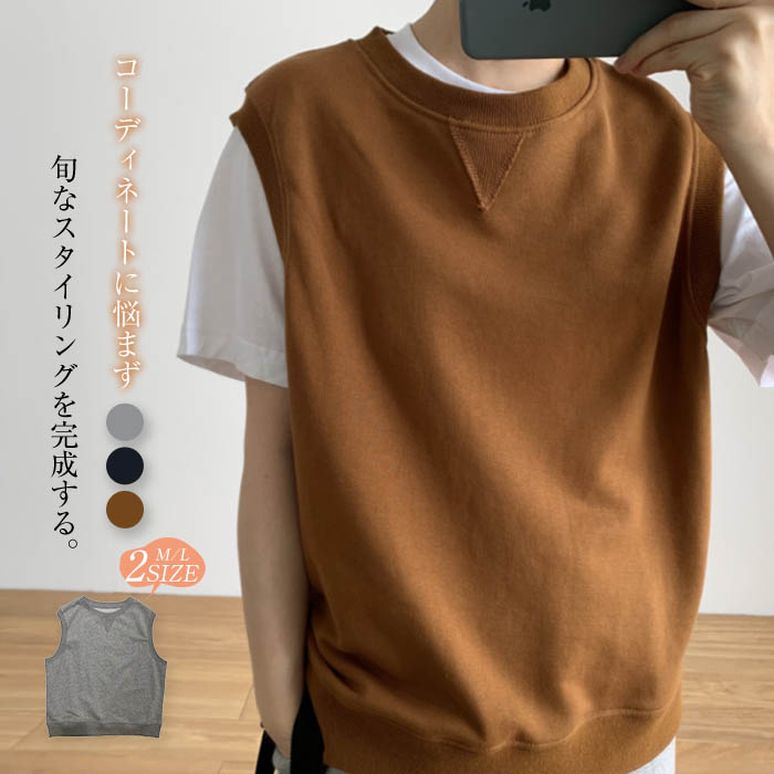 ベスト スウェット ベスト レディース 春 サマーベスト トレーナー おしゃれ カットソーベスト ゆる スウェットベスト トップス クールネック