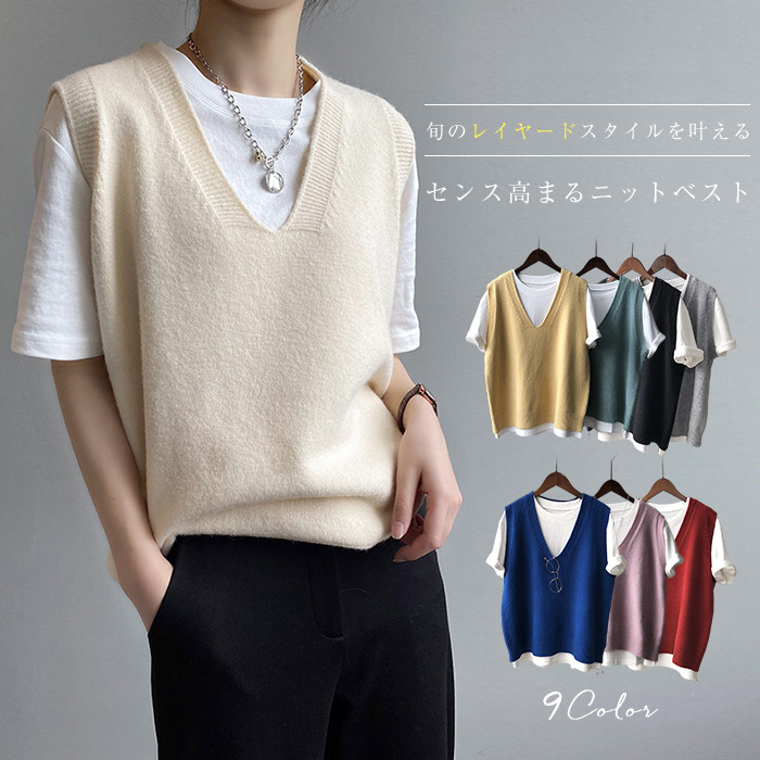 春 夏 秋 冬 カラーフル ベスト レディース ファッション ニットベスト 体型カバー ニット トップス サマーベスト Vネック