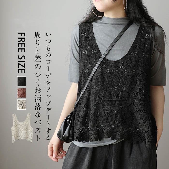 ベスト レディース 春夏 ニット ベスト \おしゃれ ベスト 春 ベスト レディース トップス ベスト ショート丈 花柄 春ベスト プルオーバー 透かし編み ノースリーブ 夏 重ね着