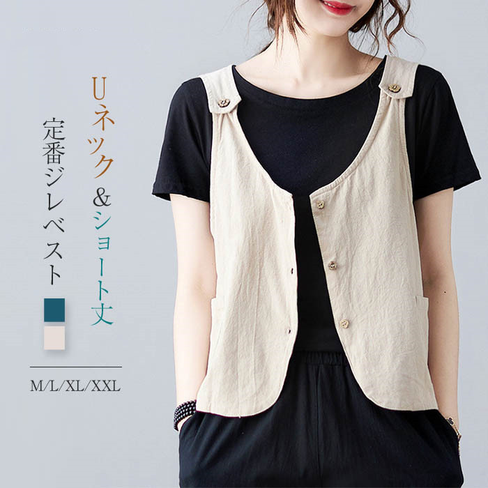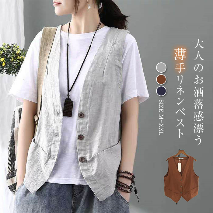 ジレ レディース ベスト 夏 春夏 綿麻風 サマーベスト ジレベスト おしゃれ 夏ベスト 薄手 前開き トップス ゆったり 大きいサイズ ノースリーブ 羽織り
