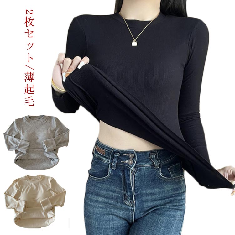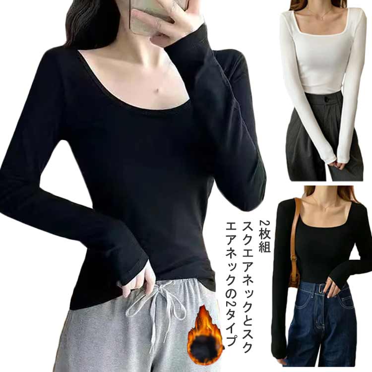 インナーシャツ 長袖 レディース 裏起毛 あったか カットソー ヒートテック 秋 冬 インナー 暖かい 黒 白