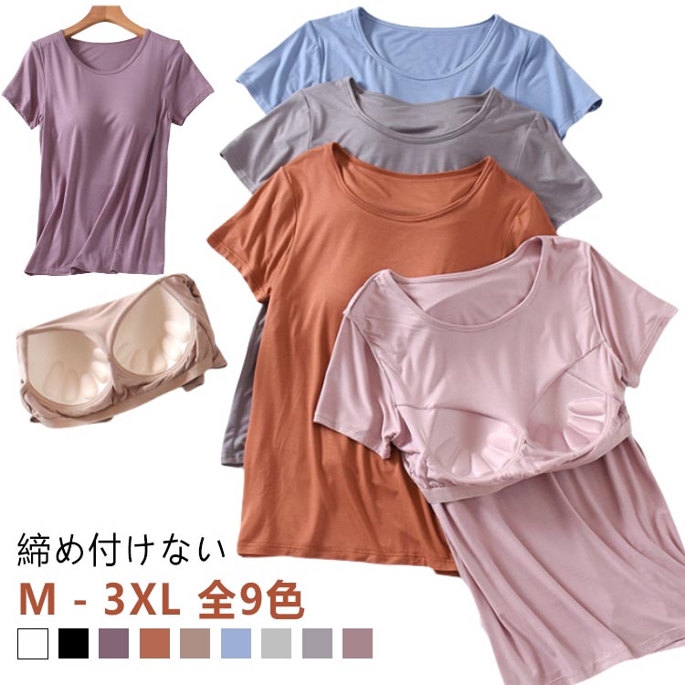 パジャマ パジャマ 薄手 Tシャツ 半袖 インナートップス カップ付 ブラ付きTシャツ 寝間着 パット付き 寝巻き トップス ランジェリー モーデル生地 肌にやさしい 通気性 快適 女性