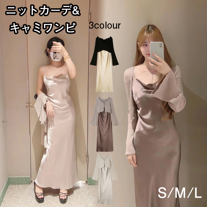 ニットカーデ キャミワンピ レディース ワンピース スーツセット 卒園式 入園式 結婚式 おしゃれ お宮参り S M L