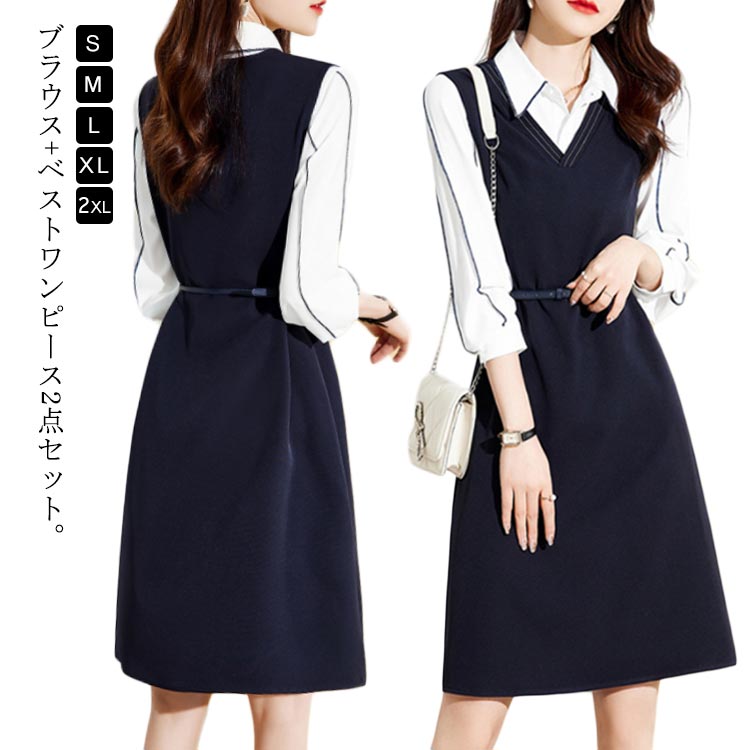 レディース セットアップ ブラウス ベストワンピース 長袖 ワンピース ストライプレディースファッション スーツ セットアップ ワンピーススーツ