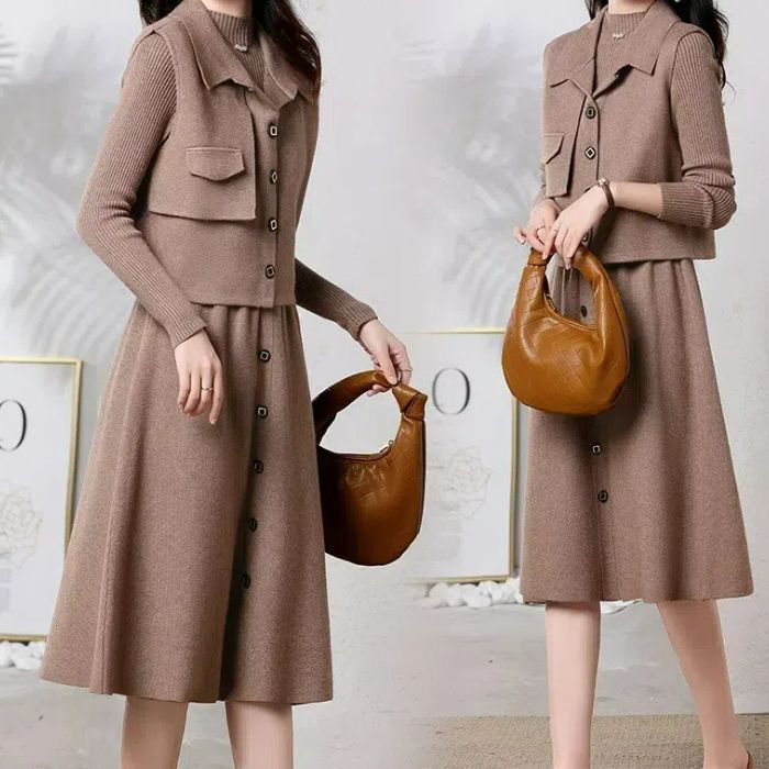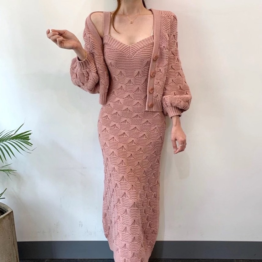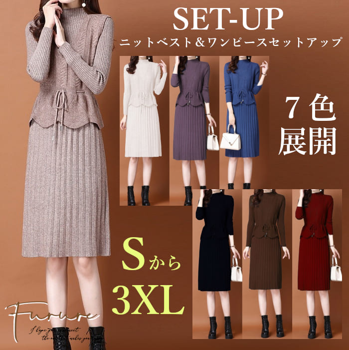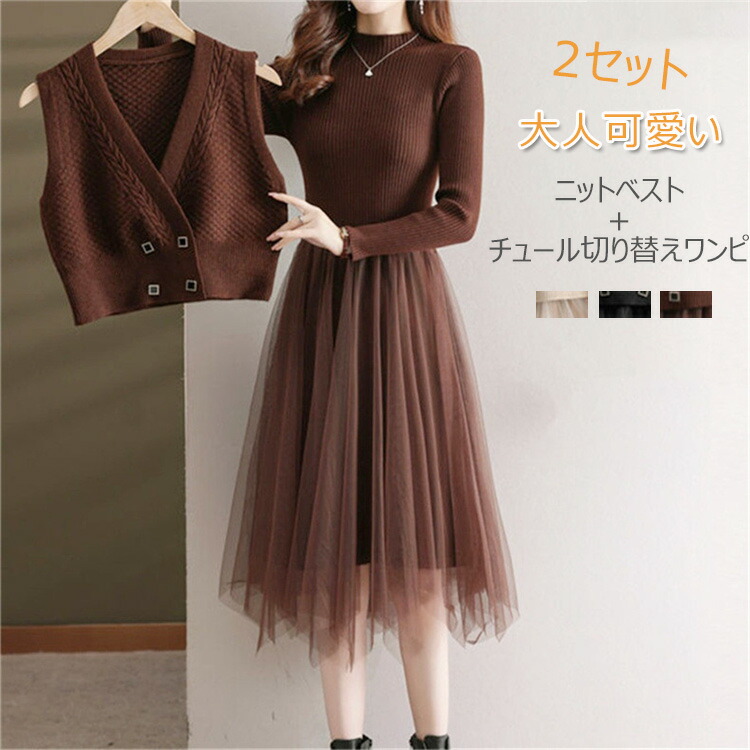 2点セット ベスト 秋 レディース カーディガン ニットワンピースレディースファッション スーツ セットアップ ワンピーススーツ