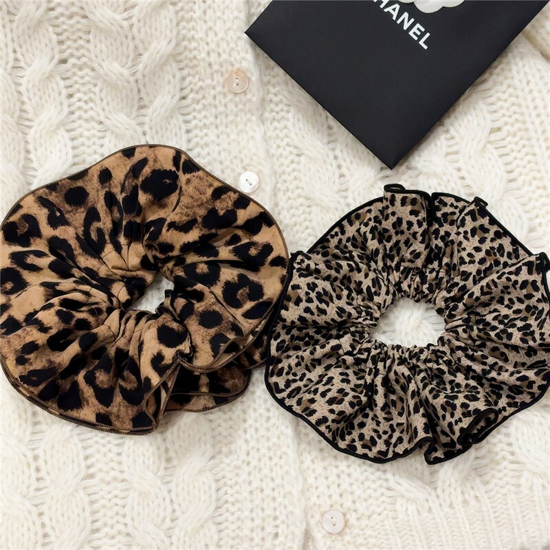 ビッグシュシュ レオパード柄シュシュ ヒョウ柄 フリル ヘアゴム トレンド 大人可愛い おしゃれ レデイースヘアアクセサリー