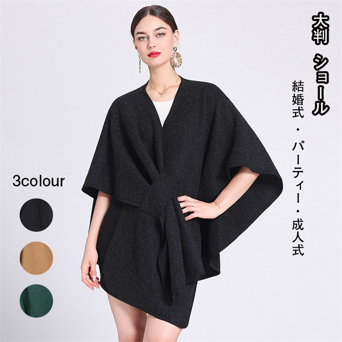 ショール レディース 結婚式 パーティ ストール 秋冬 大判 無地 シンプル 上品 女性 羽織り 羽織り物 成人式 フォーマル 二の腕カバー 黒 グリーン カーキ色 春 秋 冬