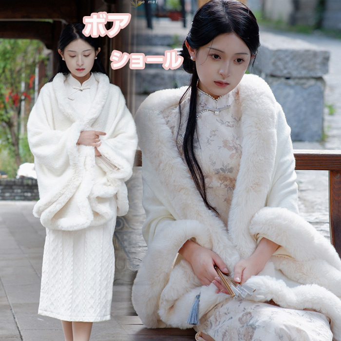 ショール ボア パーティー パーティ ドレス 衣装 二次会 お呼ばれ 披露宴 謝恩会 食事会 服装 舞台 コンサート ステージ 式典 成人式 振袖 着物 羽織 冬 イベント 祭典 被り物 白