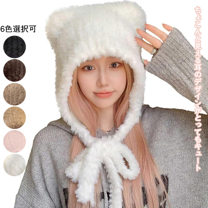 ニット帽 耳付き 帽子 ぼうし ハット ふわふわ やわらかい かわいい おしゃれ 小顔 レディース フリー
