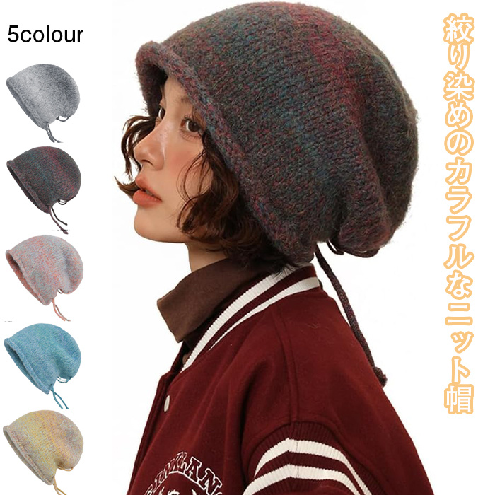 ウール帽子 グラデーション ニット帽子 冬 小顔効果 ハット ウール混紡 大きいサイズ ドローストリング 防寒 防風 保温 伸縮性