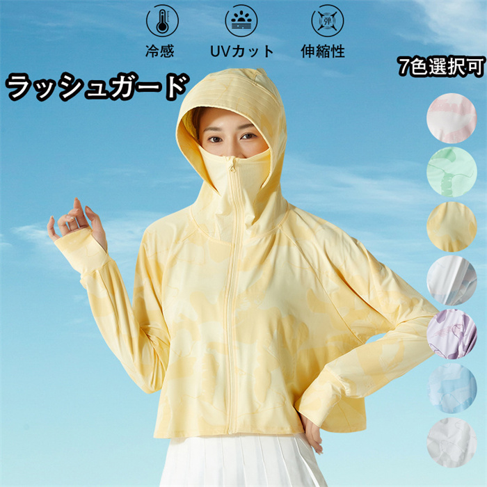 ラッシュガード レディース パーカー 長袖 水着 カット ラッシュパーカー 接触冷感 50+ アウター 夏 フード付き 日焼け対策ウェア 紫外線対策 軽量 吸水 速乾