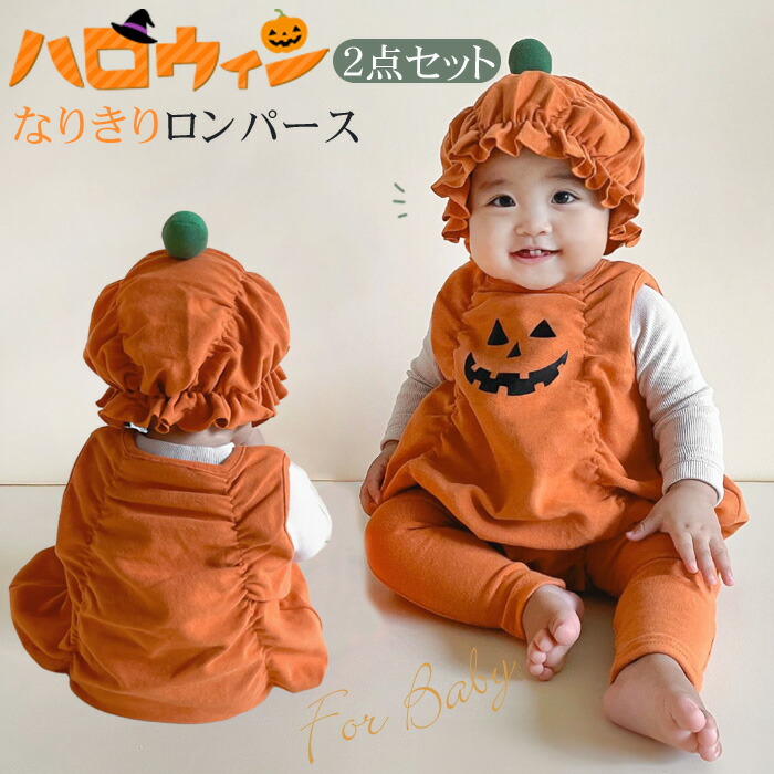 かぼちゃ ハロウィン コスプレ衣装 男の子 女の子 ロンパース カバーオール パンツ 2点セット キッズ服 着ぐるみ ハロウイン衣装 変装 コスチューム おしゃれ 写真撮影