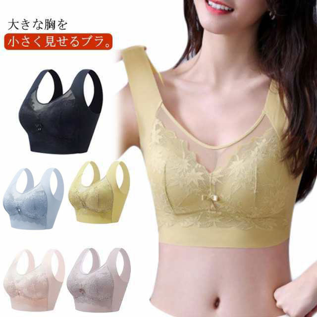 胸を小さく見せるブラ ノンワイヤーブラ 胸元スッキリ 着痩せブラ 締め付けない 痛くない レース 伸縮性