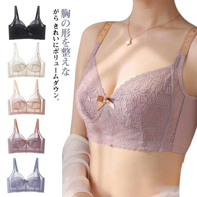 胸を小さく見せるブラ 痛くない ノンワイヤーブラ 締め付けない レース 伸縮性 伸縮性 着痩せブラインナー 下着 ナイトウェア レディース インナー 下着 ランジェリー ブラジャー